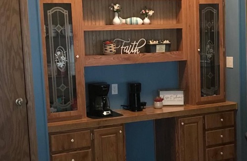 Our beautiful 3 bedroom lakefront home is comfortable for the whole family. The 1acre lot is wooded and very private. The master bedroom and ensuite is on one side of home away from the other 2 bedrooms. There is a full bathroom shared by the 2 guest rooms. Toilet paper, soap and towels provided. The kitchen is stocked with pots and pans, dishes, cups, silverware, foil, baggies as well as broiler and microwave and a convection oven. Folgers coffee is stored in the freezer, and there is a coffee bar with a Keurig and French Vanilla cups as well. There is a washer and dryer, detergent and dryer sheets provided. Beautiful huge back deck with comfortable chairs and long table for outside dining. Corn hole game on back deck. Movies and various games inside. There is a propane pit for grilling. We are 5 miles from the boat ramp on FM 83 and 8 miles from beautiful Powell Park. We are located in the San Augustine national forest for all of you hunters out there. Also a great place to stay for bass tournaments. Or just come up, relax and enjoy the lake!