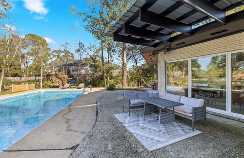 Welcome to our waterfront oasis in Mobile! This spacious 4-bedroom, 3-bathroom retreat offers stunning river views, a private pool, and ample space for up to 20 guests. Enjoy amenities like free WiFi, a fully equipped kitchen, and a fire pit. Located just 10 minutes from downtown Mobile and 30 minutes from the beach, it's perfect for family gatherings or group retreats. Explore nearby attractions and dining options with ease. Book your stay today and experience a memorable getaway!