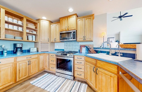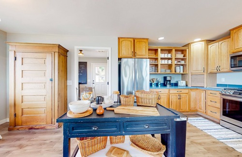 This spacious rambler features four bedrooms, two en suites, and three full bathrooms. A modern spacious kitchen fully stocked with all the gadgets, spices, and more with plenty of room to entertain. An outdoor gas Weber barbecue is just a few steps from the kitchen. Streaming TVs are in the living room and king bedrooms. A desk with a fabulous view is located just off the kitchen to do your work away from home.