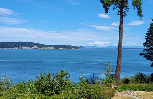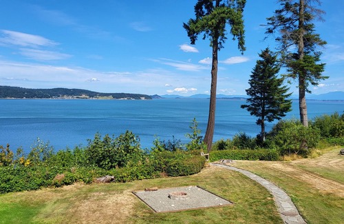 Enjoy this luxurious 3000 sq foot home on the northern end of Camano with panoramic views of the North Cascades and Whidbey. The house sits on 0.4 acres with a large grassy field with firepit for smores while enjoying the views. A private staircase takes you down to the beach where you can take a long stroll toward Utsalady bay or Maple Grove Beach.