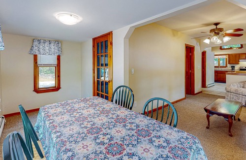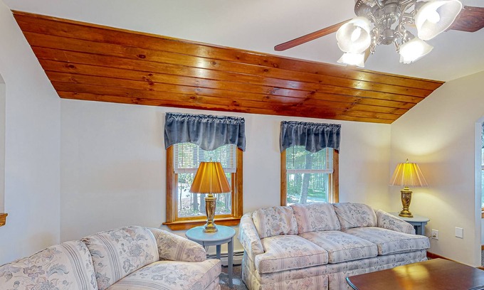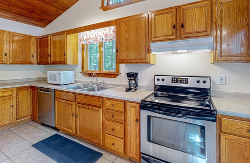 An exceptional stay awaits at this tranquil vacation home. Highlights include a cathedral wood ceiling, a well-equipped kitchen, and ample seating and sleeping areas for all your guest's needs. You'll love being located steps from Tripp Lake and a short driving distance forests and state parks, and an abundance of family-friendly outdoor activities.