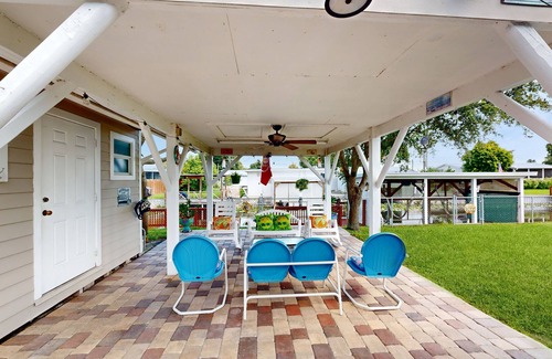 Experience the ultimate waterfront getaway at this charming house in Okeechobee, FL, located on a canal with a private dock and just half a mile away from a boat ramp for easy access to the water. Enjoy the serene riverfront views and take advantage of the amenities such as a firepit, patio with furniture, and an enclosed yard perfect for your furry friends as this property is dog-friendly.