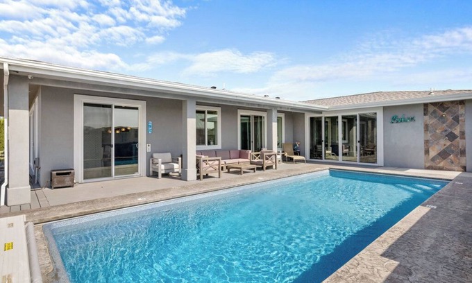 Best-rates for the Desert Aire house starts from $667 per night with includes View, Sports/Activities, Bedding/Linens, Barbecue/Outdoor Cooking, Ocean View, Balcony/Terrace, Security/Safety, Wellness Facilities, Entertainment, Internet, Kitchen, Air Conditioner, Parking, Private Pool, Child Friendly, Laundry, Pool, TV, Fireplace/Heating, Hot Tub StayAndPlay offers fully equipped golf villas, golf hotels, golf resorts, luxury golf cabins, and exclusive golf retreats, making it easier than ever to find your perfect golf escape — ideal for families, peaceful getaways, or pet-friendly retreats with the whole crew.