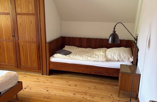 Experience the charm of a country house from the 1930s with a large garden, boat house and private sand beach.