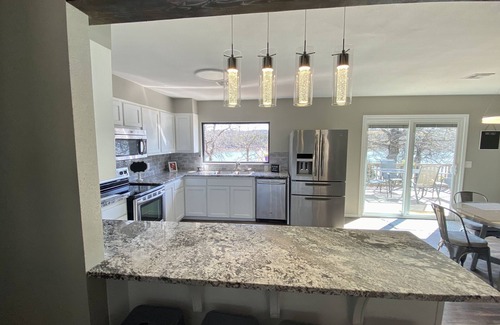 Totally remodeled waterfront home with private dock where you can park your boat in your private slip.