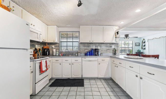 Escape to this serene 3-bedroom, 1-bath house in Hudson, FL. Nestled in a quiet neighborhood, this abode offers a tranquil retreat just minutes away from top attractions. Explore beautiful beaches, practice your golf swing, and kayak at Werner-Boyce Salt Springs State Park. After a day of boating, gather in the living room or break off to separate rooms. With a fully equipped kitchen and lounge chairs in the backyard, this house is the perfect home away from home.