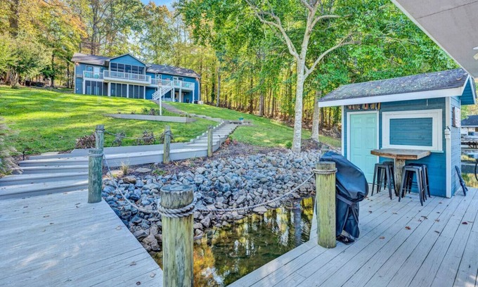 Expansive Yard: With a beautifully manicured lawn and gentle steps leading down to the dock, the outdoor space is ideal for enjoying nature, playing games, or simply relaxing by the water.