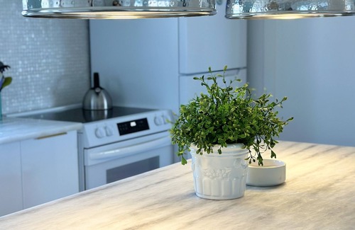 * Beautiful, large fully equipped kitchen with Carrera marble countertops, stainless appliances and large center island.