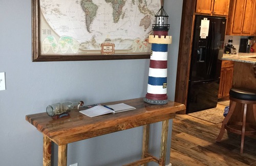 Escape to The Sandcastle, a waterfront retreat located on the serene shores of Lake Eufaula, Oklahoma. This modern and generously-sized 3400 sqft home will comfortably accommodate your large group or family reunion. With a private boat dock, game room, fully furnished rooms, and two large decks boasting stunning views of Bixby Cove, The Sandcastle is your ideal vacation getaway. Additionally, nearby convenience stores, Dollar General, Chubby's Cantina, and Porum Landing offer you a quick and easy way to stock up on essentials. So gather your squad, pack your bags, and book your stay at The Sandcastle - an unforgettable experience awaits you! Please note charges of $25.00 per person per night for parties over 13 will apply.