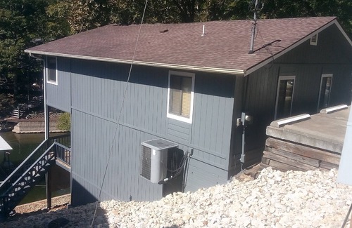 This 2 story lake home on water with private dock has 3 bedrooms, 2 full baths and sleeps 9 comfortably. Washer and dryer available at no charge. Located at the Niangua Bridge on the 2.5 MM of the Niangua.