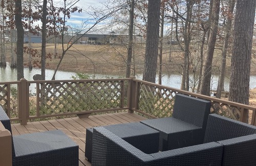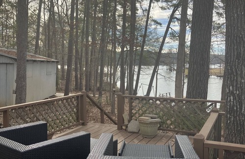 From our large deck enjoy the view of the lake. The large screened porch is perfect for relaxing and eating or for playing games! The yard is large and great for walking and enjoying nature! Enjoy your morning coffee on the swing near the dock where the kids can fish!
