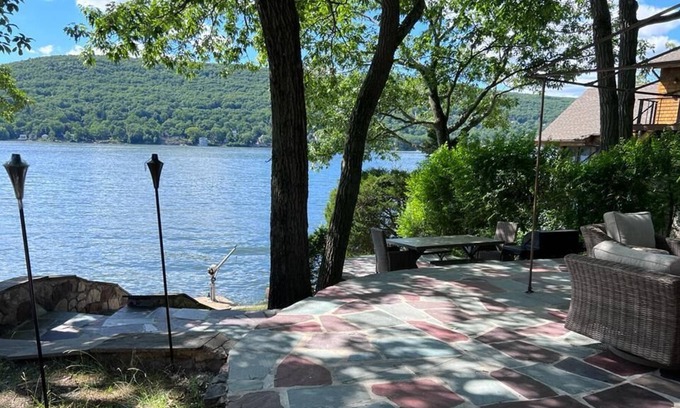 Waterfront Log home is located in Greenwood Lake. Waterfront Log home provides accommodation, featuring Security/Safety, Bedding/Linens, Child Friendly, among other amenities. This Cabin features Security/Safety, Bedding/Linens, Child Friendly, to make your stay a comfortable one.