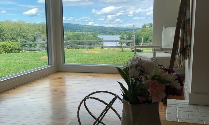 Historial waterfront farm that sits on 28 acres . The farm is referenced in a historical book by Jess Robbins called “ Come Spring” . Newly renovated farmhouse, my husband and I have been working all year to bring this property back to life. This is a farm stay, the animals will be part of the experience. My husband checks on animals daily in the morning and evenings , we offer fresh eggs to our guest . We want this to be a special experience , so you can participate in anything you like just ask us . Look forward to hosting you. When you turn down Come Spring Lane , you will drive down a long dramatic road surrounded by rolling hills. The farm house is on the left side of come spring lane. You have access to 18 acre , water and animals . This is country life , lots of nature and beautiful birds. Lake views from Our floor to ceiling windows in the living room. We renovated this house from top to bottom . Our farm Has Kune Kune pigs , sheep , and chickens which you may visit daily , if you want to help with taking care of them just let us know . Happy to give you that experience.