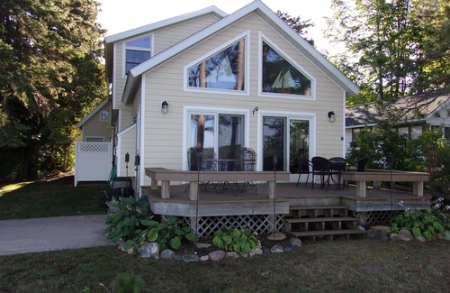 Perfect cottage on Mullet Lake. Over 2,000 square feet with open floor plan - kitchen leading into great room that overlooks gorgeous Mullet Lake. 3 bedrooms upstairs with 21x14 loft above garage for the kids. 4 beds in the loft, with futon and sleeper sofa. Can sleep 16 comfortably on beds. If there are more than 8 guests, you will be charged $50/person/night. 2 full baths. Sit on the deck overlooking the lake in this beautifully remodeled house. Also great for winter with ski slopes 30 minutes away.
