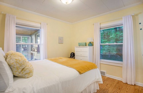 Situated on the shores of Bills Lake, this 2-bed, 1-bath Newaygo vacation rental cottage has it all — a sunroom with a fireplace, a deck with a gas grill, and access to many waterfront activities. Spend your days boating, kayaking, or fishing before heading home to dine al fresco as you take in the unbelievable waterfront views on the dock.