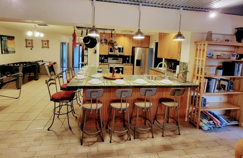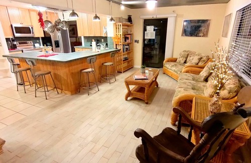 Boasting four bedrooms, three full bathrooms, a living room, a dining area, a family room, and your private arcade, the home comfortably accommodates up to 12 guests. Ideal for family vacations or gatherings with friends, this haven allows you to unwind in a spacious living environment. For larger groups, consider booking our adjacent vacation home, accommodating an additional 12 guests. We can check dates for both properties and make memories together!