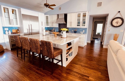 Modern Amenities | Inside, you'll find a cozy, luxurious and well-maintained home equipped with endless comforts. From the large flat screen TVs, to the Tempur-Pedic mattress; to the gourmet kitchen featuring all Thermador appliances, to the large screened-in patio. The kitchen was built for a chef! With all high-end Thermador appliances, including a professional gas range, and every cooking utensil and small appliance imaginable.