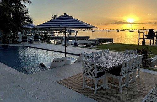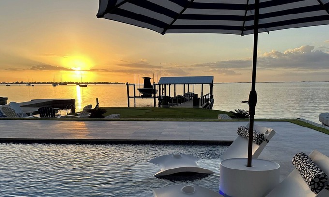 This breathtaking resort-style rental offers a newly renovated backyard designed for ultimate relaxation. Desirably located on the bay on open water, the property boasts unobstructed views of awe-inspiring sunsets that will take your breath away.