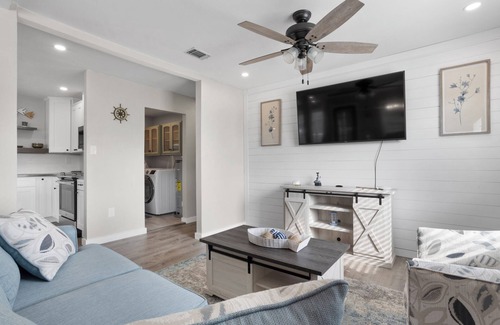 At the end of the hallway you will locate the master bedroom and the second bedroom. The master bedroom features a queen size bed while the second bedroom features two full size beds. Need more space? The sofa is also a Queen size sleeper sofa in the living room area. Both bedrooms feature Flat screen TVs and another TV is in the living room area so access to all your popular smart TV apps and Wi-Fi is easy to find. We also have a washer and dryer in the home for your convenience along with tons of amenities and games.