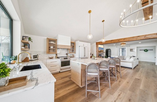 Welcome to your dream vacation on Grand Lake! Our luxury waterfront property on Monkey Island has a private dock and stunning lake views. The Island features vibrant nightlife, dining, and the Shangri-La resort. This vacation home feels like a true retreat with a fully stocked kitchen, wet bar, coffee bar, pool table, & ping pong. Our cove is ideal for swimming & fishing, with a neighborhood boat ramp & several nearby marinas. Comfortably sleeps 8 with spacious rooms & well-appointed bathrooms.