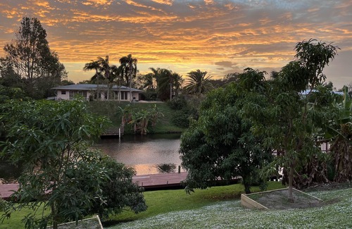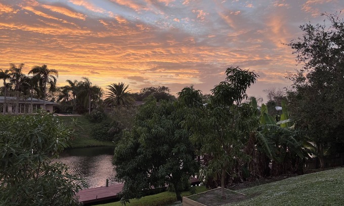 Guests have access to the wooden steps in the backyard, which are shared with the main house. It leads to a spacious 20’x20’ deck, where you can sit and enjoy the beautiful sunsets and guests also have access to the 75’x8’ dock. Here you can dock your boat or just sit and relax by the water.
