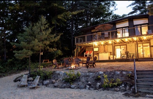 A private beach, private dock, 2 large decks overlooking the water with a gas grill, kayaks, canoes, paddle board, fire pit, and lawn games while being located within beautiful Eidelweiss Village and proximal to all the activities and stores in the White Mountain Valley make this space the ideal escape, suitable for multiple families and large groups in every season.