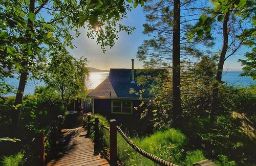 *** IMPORTANT NOTICE *** : The cabin is accessible from the street above via a private beach trail. The trail starts as a gravel path and later becomes a custom boardwalk, 80 feet long and 5 feet wide. The hillside is steep in places. Inside the cabin, a log cabin style ladder / steps leads to the upstairs bedroom loft. There is a pull-out soft on the first floor for guests who wish to sleep on the ground floor. *** While this provides a unique secluded experience right on the beach, the walk to the beach may be challenging for senior citizens or physically impaired individuals, or those with mobility challenges. ***