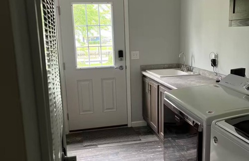 This is a private home with four bedrooms and two full baths. The primary bedroom has a king bed with its own bathroom. The second and third bedrooms both have queen beds, and the fourth bedroom has a twin trundle bed. There are large TV'S in all four bedrooms plus large screen in living room. The house will easily accommodate larger families and sleeps eight people. There is a full kitchen, dining room, laundry room with washer & dryer, as well as the open living room that also overlooks the water. Linens are included.