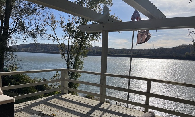 Wake up to the beautiful sunrise at your vacation home. Walls of glass to enjoy the river view all day, patio overlooking the water serene and relaxing. Barbecue grill and hot tub for your enjoyment. Kids play area with toys and slide bed. Peaceful and relaxing and only 10 min from Cincinnati. Enjoy the river for swimming, fishing and kayaking. Summer river toys included.