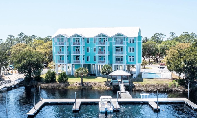 Conveniently located just one mile from the Gulf of Mexico (five minutes by boat) on the south side of the river, condo units are situated right next door to Good Times Marina, which carries all of your fishing, boating and scalloping supplies.