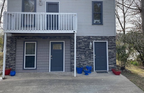 Relax with the whole family at this peaceful waterfront second floor cottage on a quiet, secluded cove at Rough River Lake across from Cave Creek Campground. You can start the day enjoying coffee on the covered porch, then swim, fish or kayak in a no-wake zone and finish up the day enjoying family time around a camp fire. This two bedroom, one bath can sleep 4 comfortably. One BR with queen and second BR with 2 twins beds. Two kayaks available for guests. No dock access.