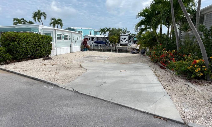 Waterfront RV Lot w 35' dock in "Venture Out". Utility hookups & beautiful views | RV Rental in Cudjoe Key