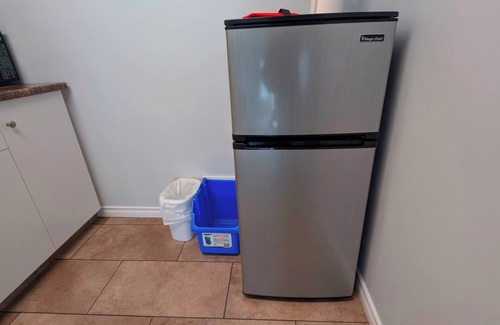 KITCHENETTE: Medium-fridge, dual conduction burners, air fryer/convection oven, microwave, coffee maker, toaster, kettle, cookware.