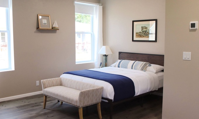 Modern Riverside accommodation. This unit is set up like a hotel. Clean, comfortable with quiet surroundings. Great home base for your day time adventures. Two queen beds sleeps four. Parking for one vehicle. Yard and river access not included for this unit. If you are looking for a full kitchen, fire pit and kayak use, please check out our other units. This unit is designed to be modern quiet and economical.