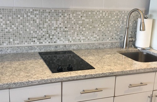 - Kitchenette: Full sized refrigerator, two-burner cooktop, microwave, sink, under-counter storage. Fully stocked with cookware, utensils, dishes, glasses (incl. wine), corkscrew/can opener, knives, spatula, etc. Coffee: Keurig and drip machine. (No oven or dishwasher.)