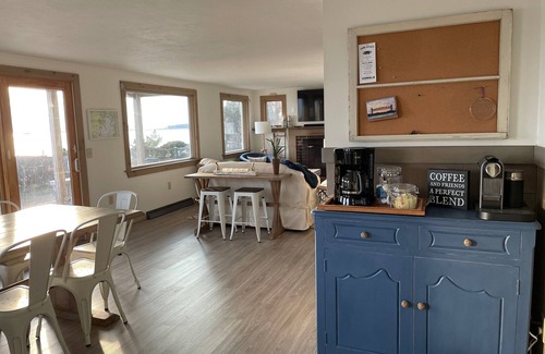 Gorgeous waterviews! Direct waterfront home on Mashnee Island for rent. Private beach in front of home as well as sandy neighborhood beach to walk/bike to. The views are breathtaking and the home has just been refreshed throughout. You’ll love the decor and style. Open family room and dining area both face the ocean. First floor guest suite – The Anchor Room- has full bath and Queen over Queen bunk beds. The kitchen steps out to sunroom which leads to the garage.