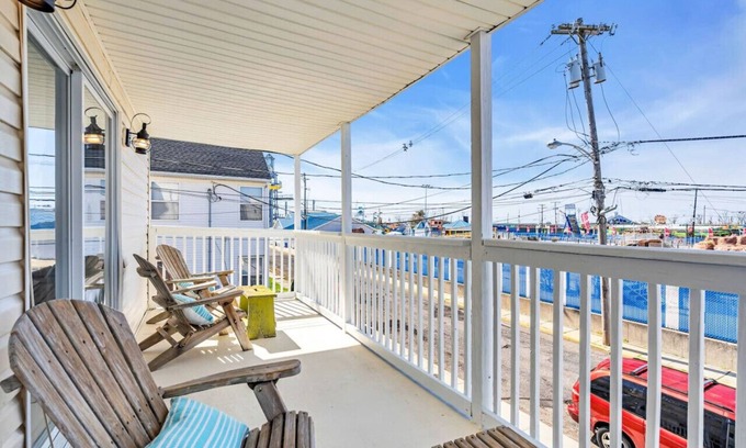 Bring the whole family to this newly renovated home with lots of room for fun. Across the street from the waterpark and a block from the beach. Sleeps 12 with 2 living rooms and 3 bathrooms and spacious kitchen and 3 porches. Watch the city lights at night twinkle in the distance as you sit on the third floor porch and enjoy beach living at its best.