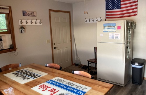 Year Round Lakehome with Pontoon Included on Leaf Lake next to Big Cormorant! Four day minimum. Four bedrooms (sleeps 8), plus pull out phooton, two bathrooms, family room, living room, flat level beach from walkout basement. Steps are steep going from main level to basement. Covered carport and public lake access not far away. Two lake side decks and on water's edge. 150 feet of shoreline with really only one neighbor close by. Room for 4 vehicles/boat trailers on off street parking. Internet provided and garbage service. Numerous lakes, restaurants, golf courses very close by. Check in at 3pm and check out at noon on days of arrival and departure. Welcome to my favorite lakeplace! P.S.- The coffee maker is a Keurig and there is a drip coffee maker as well. Mike Olson- SKY LODGE PROPERTIES MN, LLC. Company website: www.hawleyhomesforsale.com