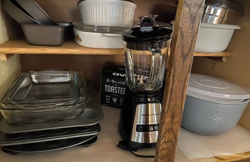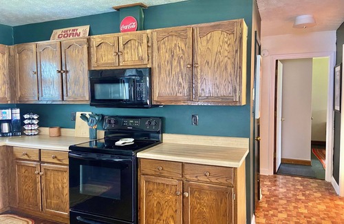 The kitchen comes fully stocked with appliances, multiple coffee-making options, cookware, and cooking essentials like spices, oil, wrap, essentials, and coffee filters. Its open-concept layout flows into the living room, so you can enjoy a favorite movie on the Roku TV while preparing dinner.
