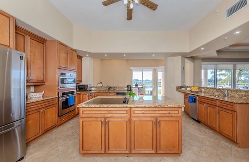 This waterfront 3 bed, 3 and a half bath plus den residence feels more like a home than a condo with 3,771 sq ft of living space and 10ft high ceilings. Enjoy water views from your kitchen with wood cabinets, granite counter tops, stainless appliances, cooks island and adjacent dinette. It is a boater’s paradise with kayak storage and launch, tennis and pickle ball courts, heated pool, exercise room with equipment, club house and gazebo with grills.