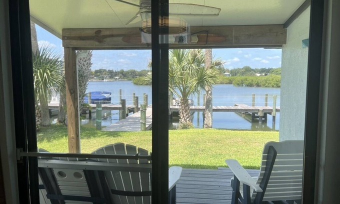 Relax on your private deck overlooking the Indian River watch dolphin's manatees' turtle's birds launch a paddle board kayak from your riverfront Villa. Close to Historic Downtowns, beaches and great local festivals and events, Farmers market. Seaside decor Villa furnished with everything you need to stay short or long term.