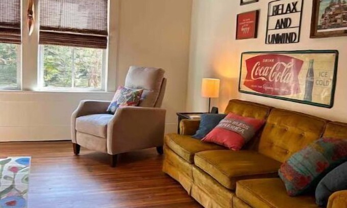This trendy spot offers lots of charming details. We will be serving you a delicious breakfast each morning. From our upstairs getaway, you will have an easy walking distance to fine dining, a bakery, vintage and antique treasures and a vibrant live music scene, you can find plenty to do! Or enjoy our quiet little town from your roomy upstairs sitting area, kitchenette and bedrooms with good-sized private bathrooms. You may choose to walk to our millpond down a country lane!