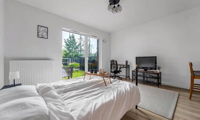 Wawer Studio - Terrace, Workspace - by Rentujemy offers accommodations in Warsaw, 5.1 miles from Warsaw National Stadium and 5.5 miles from Warsaw East Train Station. This apartment provides accommodations with a terrace. Lazienki Palace is 5.9 miles away and Copernicus Science Center is 6 miles from the apartment. With free Wifi, this apartment features a cable flat-screen TV, a washing machine, and a fully equipped kitchenette with an oven and fridge. Towels and bed linen are available in the apartment. The property has an outdoor dining area. Legia Warsaw Stadium is 5.8 miles from the apartment, while Ujazdowski Park is 5.8 miles from the property. Warsaw Frederic Chopin Airport is 11 miles away.
