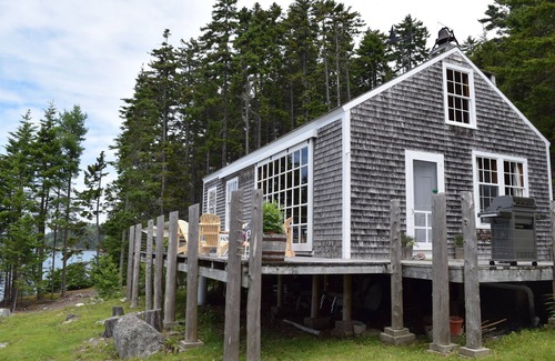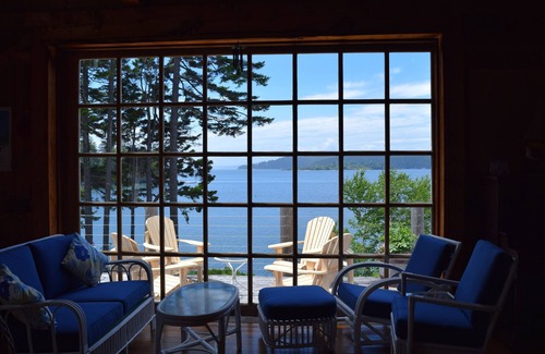 Keywords: oceanfront, cabin, camp, sunset view, rocky beachfront, Acadia National Park