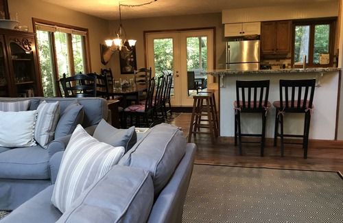 Of all the Casa Comfort properties, this one is THE most relaxing, hands down! When we need a break in our own lives, when we want to slow down and catch our breath, this is where we go because it is quiet, private, put your feet up kinda' comfortable, and it is captivating! We love the kitchen with it's granite counter tops, custom tile back splash, stainless steel appliances, and the hardwood laminate flooring throughout (I too thought it was the real McCoy at first), the screened porch and private setting that is due in large part to the gargantuan Mountain Laurel bushes, mature trees and lush foliage that surround the property and provide a screen from neighbors and the [nominal] street traffic year round. Though we can't promise, depending on what time of year your trip brings you to LaMaison, you may see a deer or a pesky bear from time time sauntering across the property!