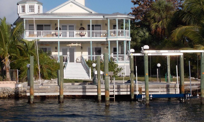 Beautiful 3 story home on the Atlantic Ocean with deep water dockage and easy access to Florida Bay by way of Adams Cut (2 blocks away).