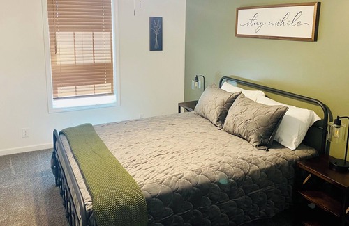 Guest house is located on personal property offering quiet country living. 800 square feet of living space with a front porch to enjoy your morning coffee or evening drink. Situated just outside of Mattoon, IL north of Lake Paradise. Within 5 minutes of Lake Mattoon (boating pass required $75/year) and 20 minutes from Lake Shelbyville. We're only 16 miles from EIU. This is the perfect place to stay for local sporting events and fishing tournaments. Other small towns nearby worth visiting include Arthur, IL and Casey, IL. We have ample parking for your boat, car, and side by side trailers. Come out and enjoy our quiet slice of paradise.