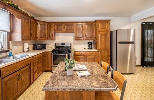 Weaver Ridge offers 3 bed and 2 bath. The kitchen is fully equipped, and there is an extra sink/vanity area off of the kitchen that supplements the bathrooms. The 3 bedrooms have comfortable queen beds and ample room to spread out. There is a washer and dryer in the basement. You will find our house sparkling clean and decorated in a calm and relaxing style.