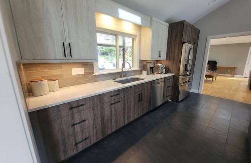 But the surprises don't stop on the main floor. Head downstairs to discover a fantastic hangout area, where you can gather with your family and friends to enjoy games, laughter, and quality time together. This additional space adds a whole new dimension to your stay, providing endless entertainment options for all ages. There are also two twin beds located in this area. There is also a second 3/4 bathroom. The washer and dryer are conveniently located in a third bathroom on the lower level!