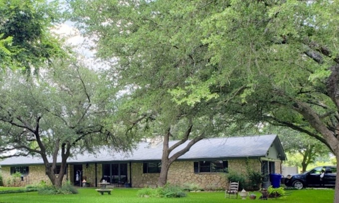 Home accommodates 11 guests with 7 beds. If your group is just 2-4 people; ask about discount. This 4 bedroom, 2 bath, and garage 2400 sq ft home is a beautiful home sitting ONE mile outside of Stephenville, Texas. If you love big trees this is the place for you. With country living 3 minutes from town.